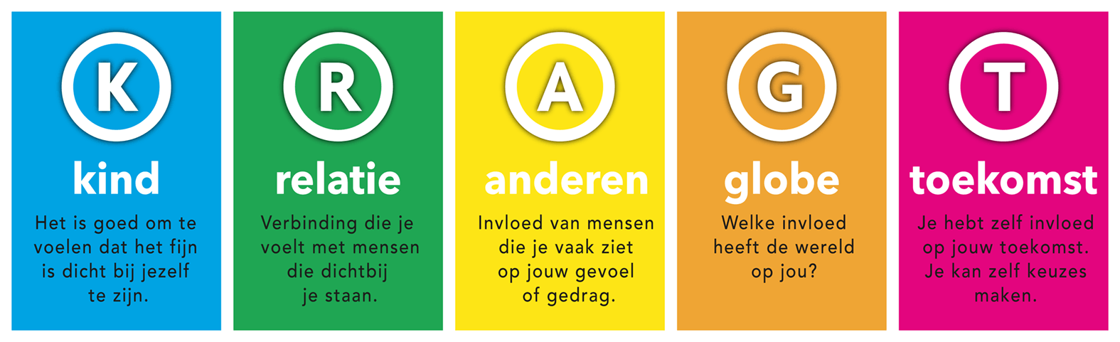 Tijdens de KRAGT training leert het kind hoe het zich voelt en gedraagt binnen die systemen. De plek en/of het gedrag van een kind kan per systeem verschillen. Bijvoorbeeld: thuis is het kind de oudste en meestal open en vrolijk, terwijl het in de klas misschien een van de jongsten is en introvert gedrag laat zien of zichzelf soms buiten de groep plaatst. We laten het kind zien wat de keuzes zijn met betrekking tot loyaliteit in het gezin en de groep: erbij horen, (soms ten koste van jezelf) tegenover de andere keuze; dicht bij jezelf blijven, waardoor je jezelf mogelijk buiten de groep zou kunnen plaatsten. In de training komen onderwerpen aan de orde als: 'Wat is de invloedsfeer van anderen op jou?' 'Hoe geef je je grenzen aan en hoe kun je er toch bij horen zonder jezelf te verliezen en trouw te blijven aan je eigen gevoel?'